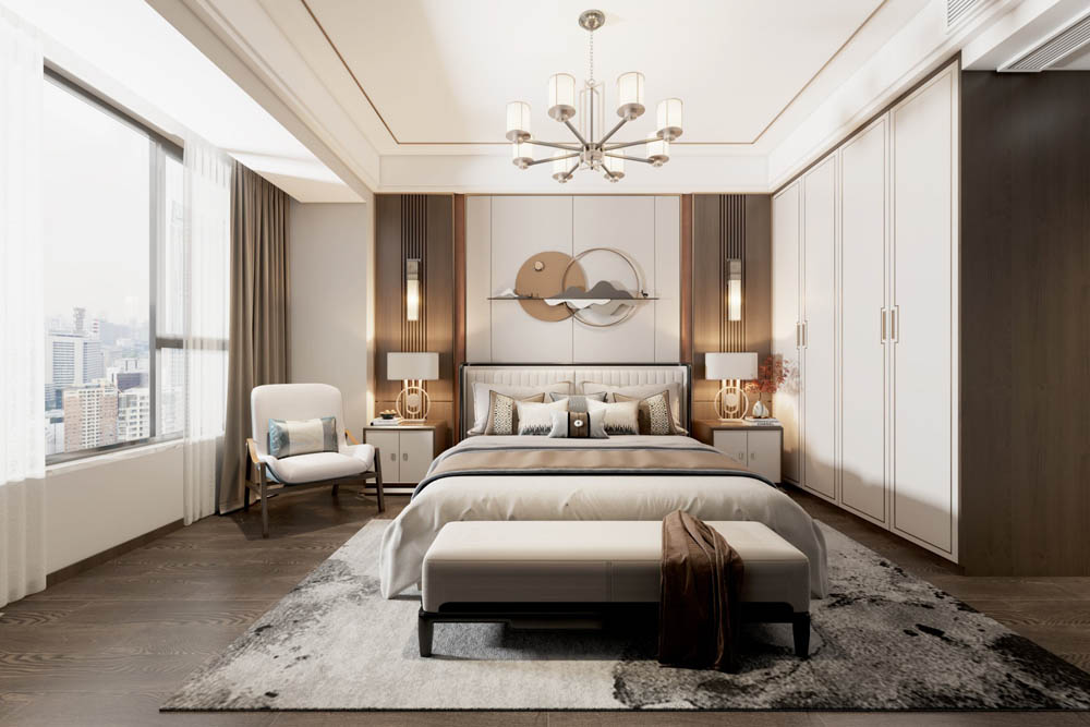 新中式風(fēng)格是富含千年底蘊的東方中式風(fēng)格與摩登時尚的現(xiàn)代風(fēng)格彼此相遇結(jié)合,其精華之處在于以“一器一物皆是景,細微之處有乾坤”的古意為出發(fā)點,追隨時代的潮流,功能空間相互滲透,色彩空間相互碰撞,消除了傳統(tǒng)中式風(fēng)格的沉悶和厚重,力圖在惹人癡迷的現(xiàn)代輕奢簡約中彰顯出傳統(tǒng)中式意蘊的雅致逸趣。